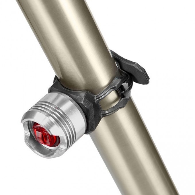 Фонарь JY-3006T габаритный задний, 1 суперяркий красный светодиод, алюминиевый корпус и мягкий ремешок, под батарейки 2хCR2032, серебристый