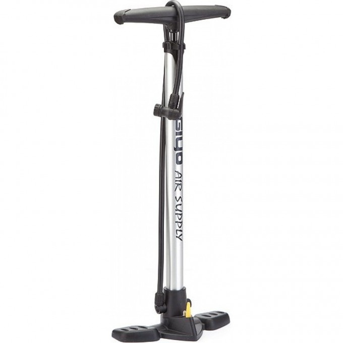 Насос GF-32 Giyo ручной напольный, алюминиевый корпус, давление до 11 атм, вентиль Presta/Автовентиль, серебристо-чёрный