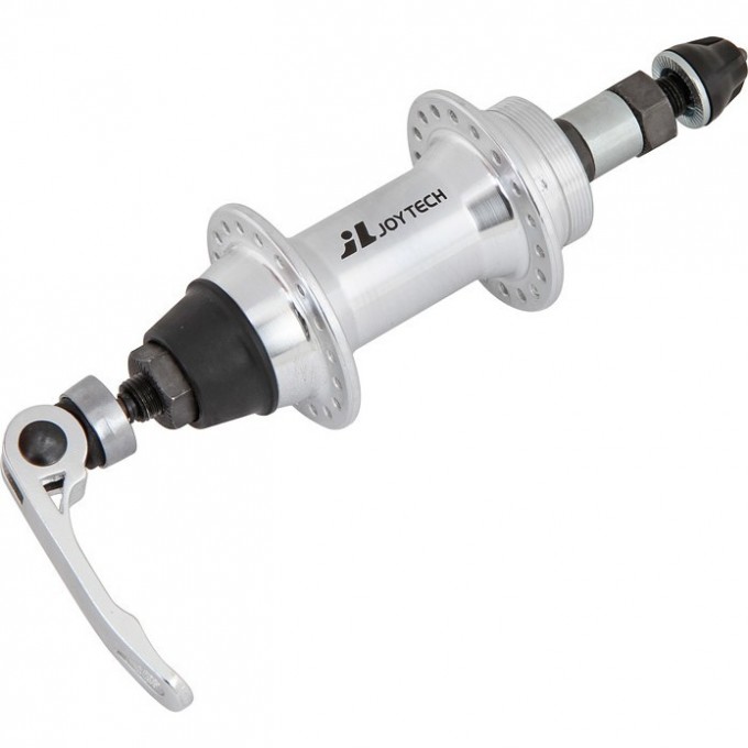Втулка задняя 752DSE Joytech, MTB, на 36 спиц, с эксцентриковым зажимом, под трещотку на 6-7 скоростей, двойное резиновое уплотнение, O.L.D. 135 мм, диаметр фланцев по отверстиям для спиц 45 мм, расстояние между фланцами 57 мм, ось 10х145 мм, алюминиевый корпус, серебристая, 268 г